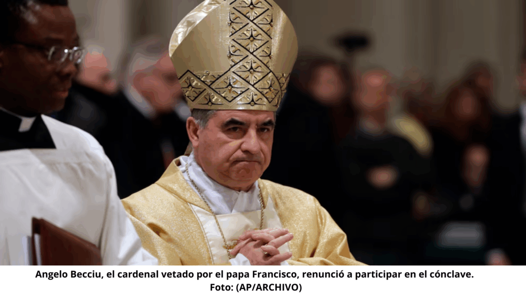 El cardenal Angelo Becciu, figura central en uno de los mayores escándalos financieros del Vaticano, confirmó este martes que no participará en el cónclave que comenzará el 7 de mayo para elegir al sucesor del papa Francisco. Su decisión llega tras días de incertidumbre sobre su estatus y en medio de fuertes divisiones dentro de la Curia romana.