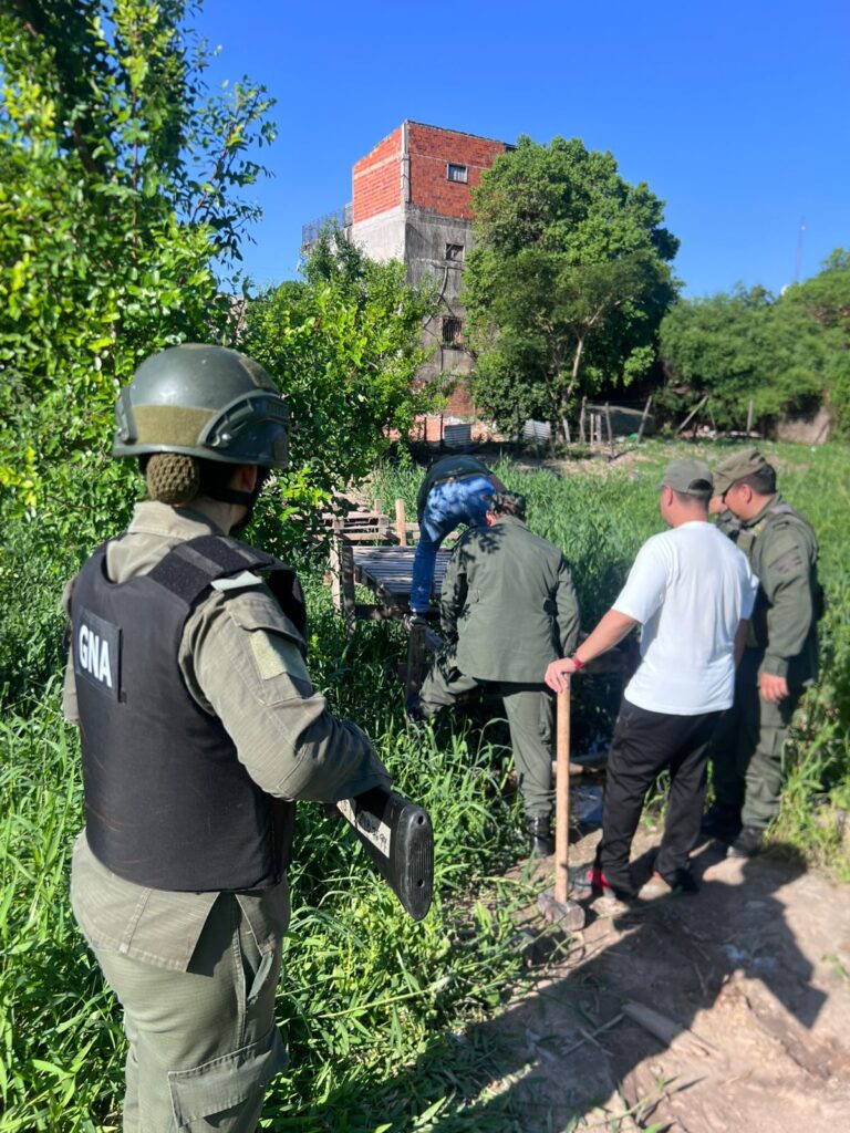 Las publicaciones de la legisladora incluyeron imágenes en las que se observan agentes de la Gendarmería desarmando improvisados puentes de pallets en áreas de vegetación cercana a la frontera.