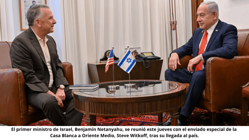 El primer ministro de Israel, Benjamín Netanyahu, se reunió este jueves con Steve Witkoff, el enviado especial de Estados Unidos para Oriente Medio, en su oficina oficial, según informó la oficina del mandatario sin ofrecer más detalles sobre el encuentro.