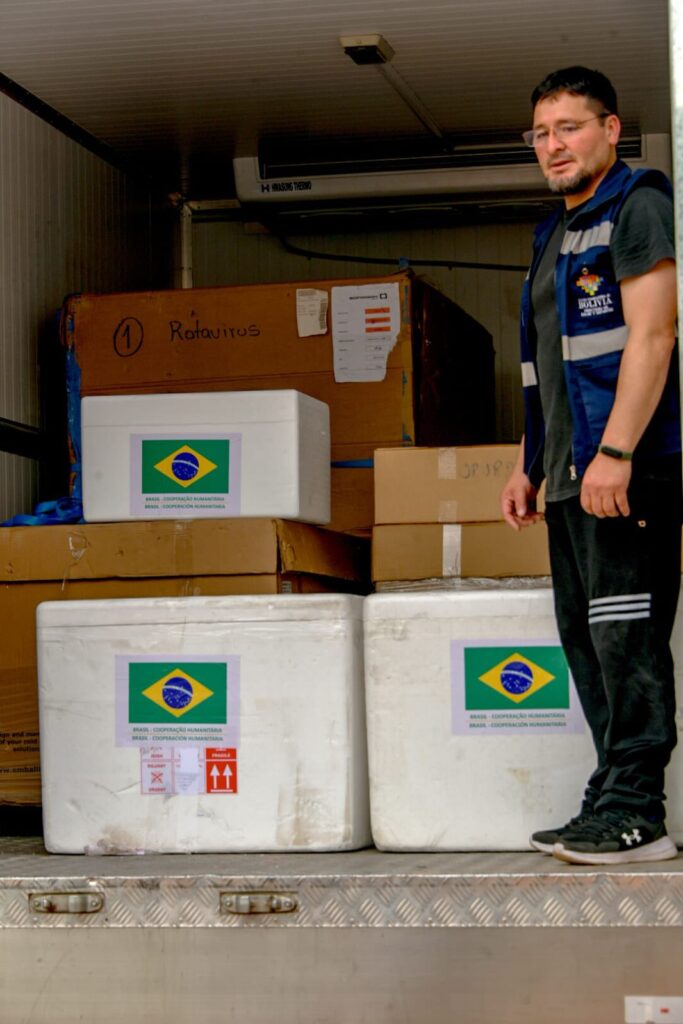 La operación incluyó una caravana de camiones refrigerados que partieron desde La Paz y Santa Cruz, cruzaron por Puerto Quijarro y llegaron finalmente a Corumbá para su entrega oficial.