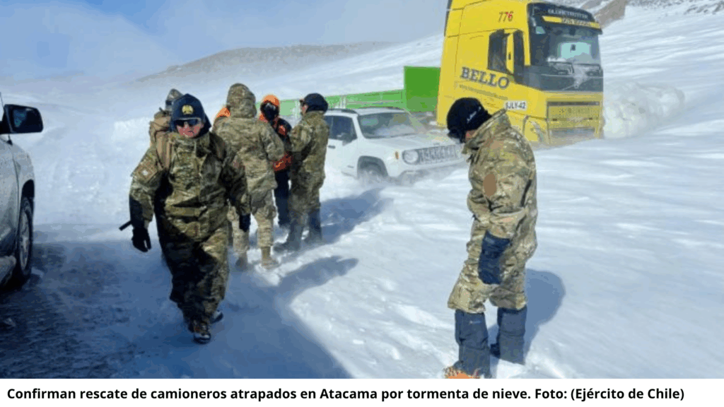 Este lunes, el Ministerio de Relaciones Exteriores de Paraguay anunció que todos los camioneros varados en el desierto de Atacama fueron rescatados tras una nevada inesperada. Los transportistas quedaron bloqueados en la Ruta 27CH, tras el cierre total de la vía por la tormenta, lo que complicó gravemente su tránsito.