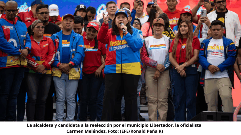 El chavismo también se movilizó con fuerza en Caracas, especialmente en el municipio Libertador, donde la alcaldesa Carmen Meléndez busca su reelección rodeada de apoyo oficial.