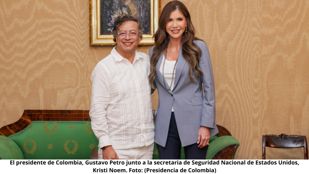 El jueves, en Bogotá, la secretaría de Seguridad Nacional de Estados Unidos, Kristi Noem, se reunió con el presidente de Colombia, Gustavo Petro, para abordar diversos temas de seguridad y cooperación bilateral, incluidos los desafíos migratorios y el narcotráfico. Este encuentro cierra una gira que afianza los lazos entre ambos países en áreas clave para el fortalecimiento de sus relaciones bilaterales.
