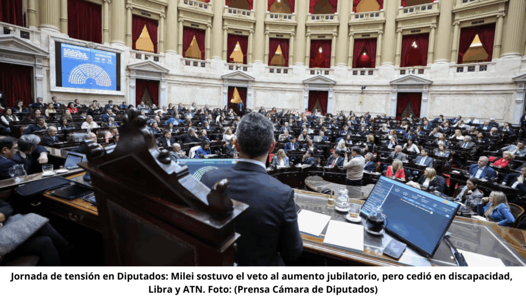 La Cámara de Diputados de Argentina vivió una sesión de alta tensión este miércoles, donde el presidente Javier Milei sostuvo el veto al incremento del 7,2 % en las jubilaciones, pero se vio debilitado por derrotas legislativas en áreas sociales y de investigación.