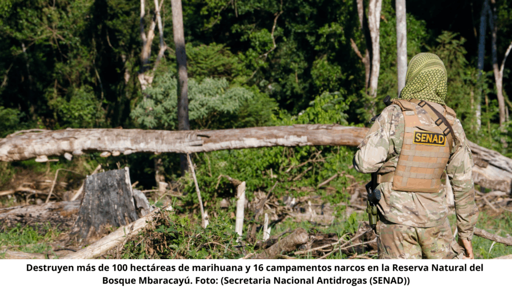 En una acción coordinada de cinco días, fuerzas antidrogas, militares y custodios ambientales de Paraguay destruyeron más de 25 toneladas de marihuana y eliminaron cultivos ilegales en una importante reserva natural. El operativo se desarrolló en el Bosque Mbaracayú, una zona protegida ubicada en el departamento de Canindeyú, al noreste del país y fronterizo con Brasil.