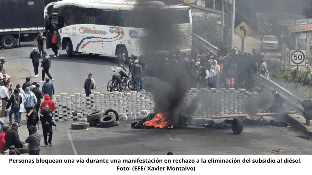 El origen de las protestas está en la eliminación del subsidio al diésel, que elevó el precio del combustible de USD 1,80 a USD 2,80 por galón, afectando al transporte, al sector agropecuario y a ciudadanos con menor capacidad económica.
