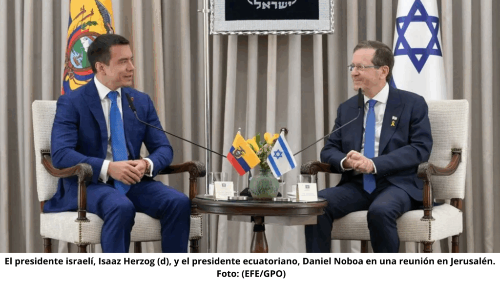 Además de su encuentro con Herzog, Noboa mantuvo una reunión con el gran rabino sefardí de Israel, Shlomo Amar, y realizó una visita oficial al memorial Yad Vashem, dedicado a las víctimas del Holocausto, como parte de su agenda en Israel.