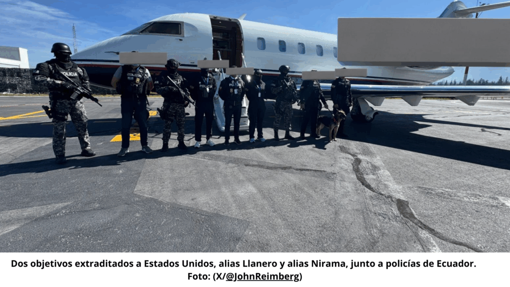 Ecuador extraditó hoy a Estados Unidos a Omar Auseno Burgos (“Llanero”) y Nirama Chávez Galvis (“Nirama”), considerados por el ministro del Interior John Reimberg como “dos de los narcotraficantes más grandes” de origen colombo-ecuatoriano.
