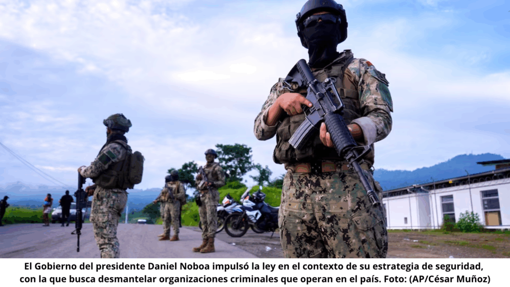 Desde el Ejecutivo se defiende la Ley como una herramienta imprescindible para desarticular organizaciones criminales, en un país que, solo en 2023, registró más de 8.000 homicidios, muchos atribuidos al narcotráfico. En enero, Noboa declaró el estado de “conflicto armado interno”, lo que marcó un giro en la política de seguridad nacional.