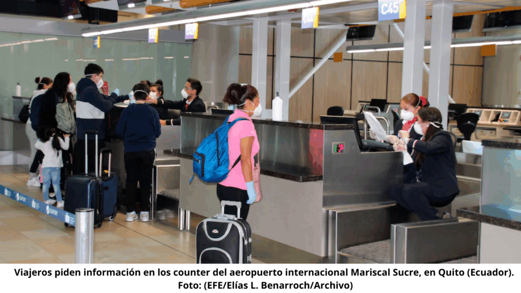 La medida se aplicará tanto a ciudadanos de esos países como a viajeros de otras nacionalidades que hayan permanecido más de diez días en tránsito o visita en alguno de esos territorios antes de llegar a Ecuador.