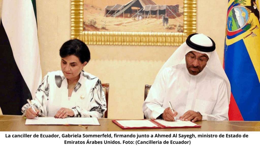 Como parte de esta estrategia, Ecuador proyecta abrir una embajada en Abu Dabi. El objetivo es consolidar una relación permanente que permita, a mediano plazo, la negociación de un acuerdo comercial con los Emiratos.