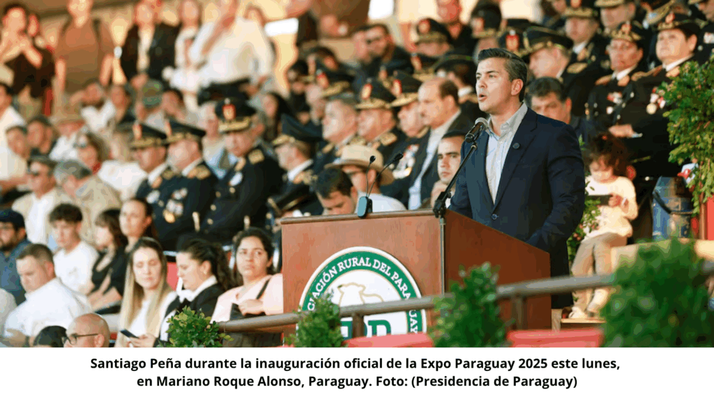 El presidente de Paraguay, Santiago Peña, lanzó un llamado al sector ganadero para participar de forma activa en la discusión sobre la vacuna contra la fiebre aftosa, durante su discurso inaugural en la Expo Paraguay 2025.