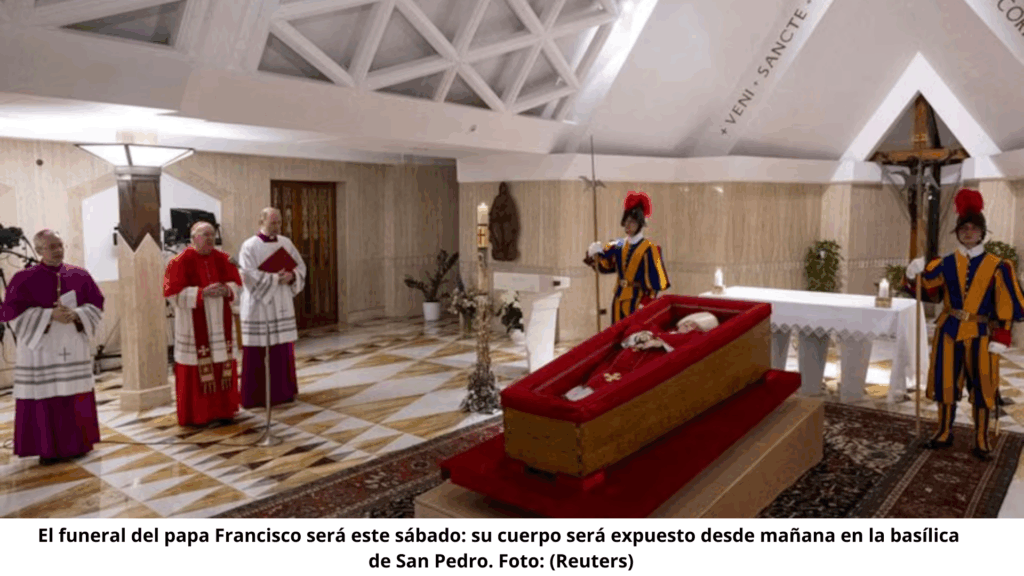 El próximo sábado 26 de abril, a las 10:00 horas (8:00 GMT), se llevará a cabo el funeral del papa Francisco en la Plaza de San Pedro, en el Vaticano. La ceremonia será presidida por el cardenal Giovanni Battista Re, decano del Colegio Cardenalicio, y contará con la presencia de jefes de Estado y delegaciones oficiales de todo el mundo.