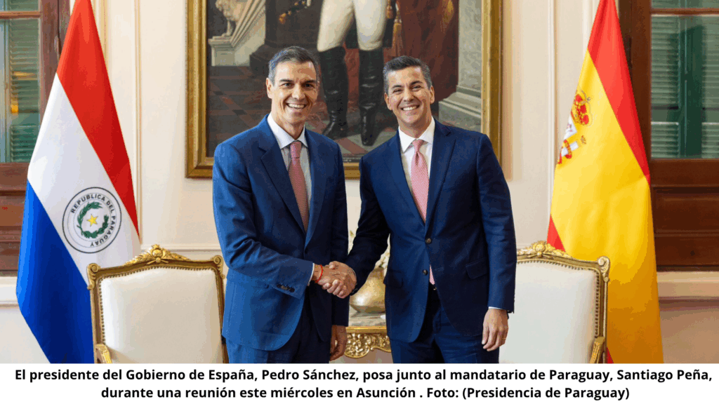 El presidente del Gobierno español, Pedro Sánchez, y el mandatario paraguayo, Santiago Peña, se encontraron en Asunción para abordar asuntos clave de su agenda bilateral tras una intensa gira del español por el Cono Sur.