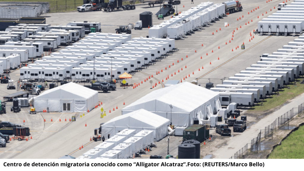 Alligator Alcatraz fue inaugurado hace solo un mes en los Everglades, tras ser construido en una semana sobre un aeropuerto abandonado. Presentado por el gobernador de Florida, Ron DeSantis, como un “modelo de deportación”, el centro ha sido blanco de duras críticas desde su apertura.
