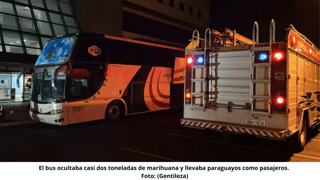 El vehículo, propiedad de la empresa Expreso del Oeste, simulaba realizar un viaje turístico con 21 pasajeros paraguayos a bordo, quienes aseguraron que su destino final era la ciudad de Blumenau, en el estado de Santa Catarina, para realizar compras.