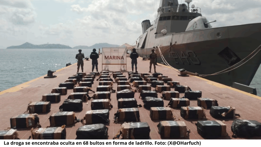 El cargamento fue asegurado y transportado hasta el muelle de la Octava Región Naval, donde se realizó el pesaje correspondiente. El resultado: 1.3 toneladas de cocaína listas para su distribución. La droga fue puesta a disposición de la Fiscalía General de la República (FGR), que abrió la carpeta de investigación correspondiente.