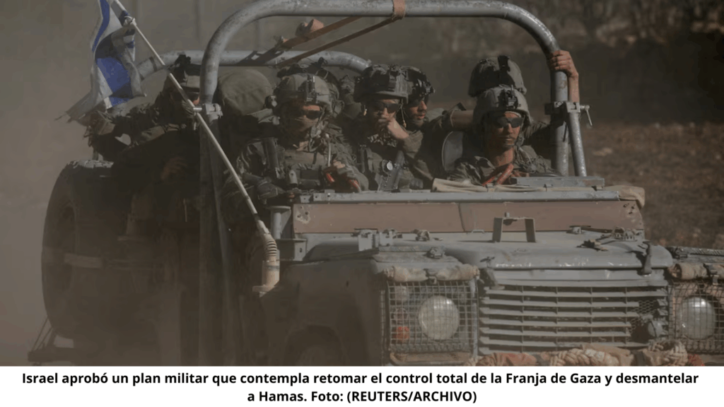 El gabinete de seguridad de Israel aprobó un nuevo plan militar que contempla una ocupación gradual y prolongada de la Franja de Gaza, con el objetivo declarado de desmantelar por completo el control del grupo islamista Hamas, calificado por Israel como organización terrorista.