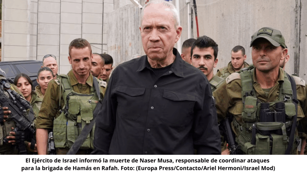 Las Fuerzas de Defensa de Israel (FDI) informaron este viernes sobre la muerte de Naser Musa, señalado como uno de los principales responsables de las operaciones militares de Hamas en el sur de la Franja de Gaza. Musa, quien ocupaba el cargo de jefe del departamento de control militar de la Brigada Rafah, murió durante un bombardeo aéreo en la ciudad de Jan Yunis, según confirmaron fuentes militares.