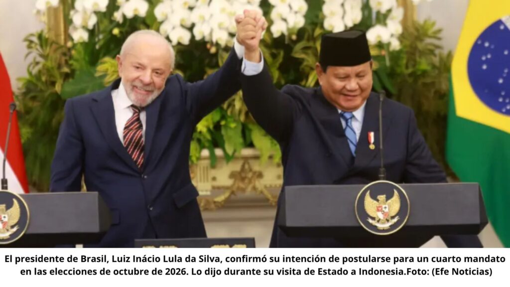 El presidente brasileño, Luiz Inácio Lula da Silva, anunció este jueves desde Yakarta su intención de competir por un cuarto mandato en las elecciones generales de 2026. La declaración se produjo en el marco de una conferencia de prensa conjunta con su par indonesio, Prabowo Subianto, durante su gira oficial por el sudeste asiático.