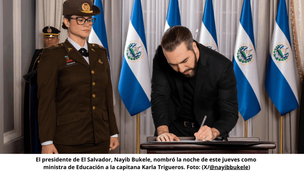 El presidente de El Salvador, Nayib Bukele, anunció este jueves por la noche el nombramiento de Karla Trigueros como nueva ministra de Educación, en reemplazo de José Mauricio Pineda, quien estuvo al frente del ministerio desde febrero de 2022.