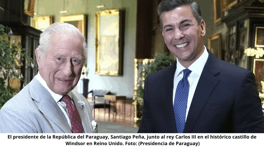 El presidente de Paraguay, Santiago Peña, visitó este miércoles el histórico Castillo de Windsor, donde mantuvo un encuentro con el rey Carlos III, en una cita que representa un paso significativo en las relaciones bilaterales.