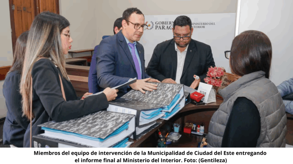 El interventor de la Municipalidad de Ciudad del Este, Ramón Isidoro Ramírez, finalizó oficialmente su labor este miércoles y presentó su informe final ante el Ministerio del Interior. El documento será ahora remitido al presidente Santiago Peña y, posteriormente, a la Cámara de Diputados, en cumplimiento de lo establecido en la legislación vigente.