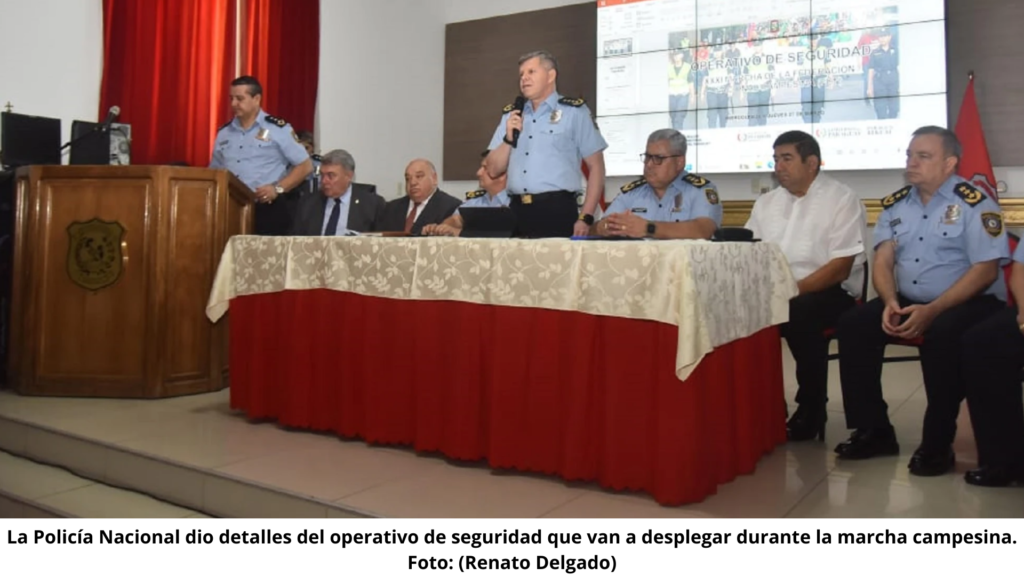 El comisario Carlos Benítez, comandante de la Policía Nacional de Paraguay, anunció este lunes un fuerte despliegue de seguridad para hacer frente a las marchas y movilizaciones programadas en la capital, Asunción. Las marchas, que se llevarán a cabo entre el 25 y el 27 de marzo, incluyen la emblemática movilización de la Federación Nacional Campesina (FNC), que se desarrollará a lo largo de estos días.