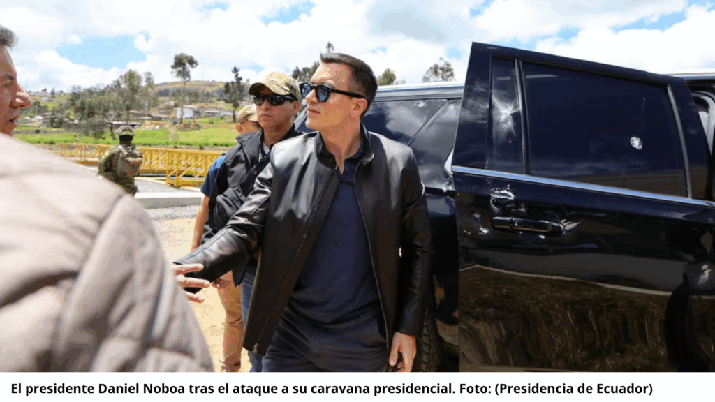 El presidente de Ecuador, Daniel Noboa, fue atacado este lunes 7 de octubre durante una caravana oficial en la provincia de Cañar, según informó la Presidencia. El mandatario se dirigía al cantón Tambo para encabezar la entrega de obras de agua potable y alcantarillado.