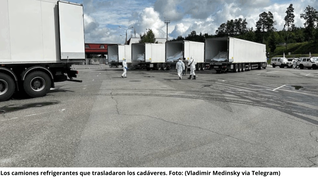 Medinsky publicó imágenes en Telegram que muestran camiones frigoríficos descargando bolsas blancas con cuerpos, y calificó el operativo como parte de los acuerdos de Estambul.