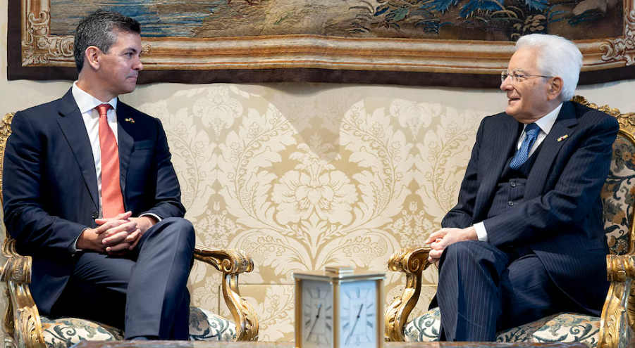 El presidente de Paraguay, Santiago Peña, culminó este miércoles su visita oficial a Italia con un encuentro con su homólogo Sergio Mattarella, en el Palacio del Quirinale, sede de la Jefatura del Estado italiano.