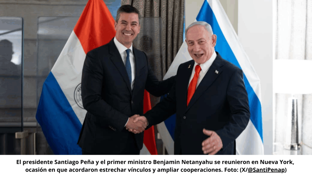 El presidente de la República de Paraguay, Santiago Peña, se reunió en Nueva York con el primer ministro de Israel, Benjamin Netanyahu, durante su participación en la Asamblea General de las Naciones Unidas.