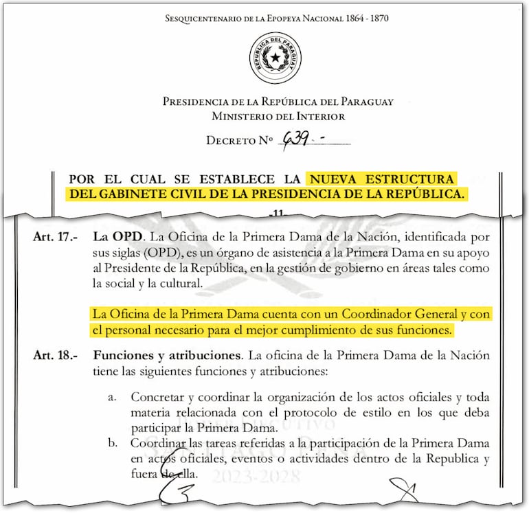 La Oficina de la Primera Dama (OPD), según el Decreto N° 639 de noviembre de 2023, depende del Gabinete Civil y debería contar con mecanismos de transparencia, sin embargo, no existe información pública sobre el personal o sus funciones, ni declaraciones de bienes de la primera dama ante la Contraloría.