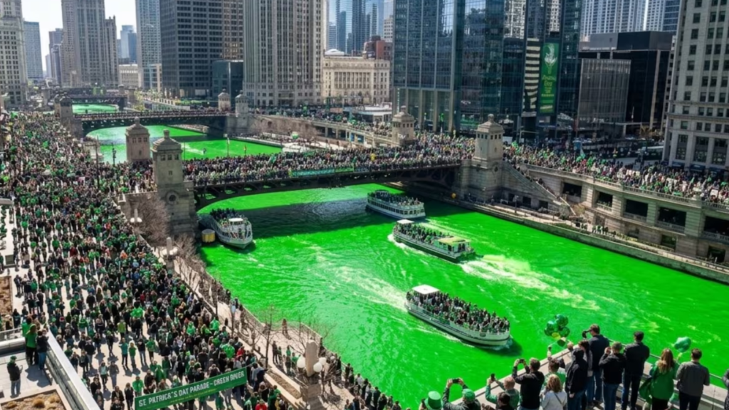 Desde 1962, el río Chicago se convierte en el centro de todas las miradas al transformarse en un espejo de color verde brillante. Este evento, que marca el inicio de las festividades de San Patricio, nació de una coincidencia en el sindicato de plomeros local, cuando descubrieron que un tinte usado para detectar fugas en el alcantarillado teñía el agua de forma instantánea.