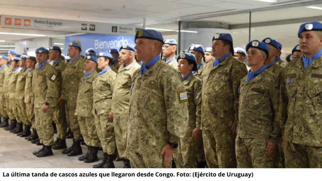Un contingente de cascos azules uruguayos completó este domingo su retorno tras permanecer 19 meses en misiones de paz en el Congo, un lapso superior al habitual para las fuerzas de la ONU.